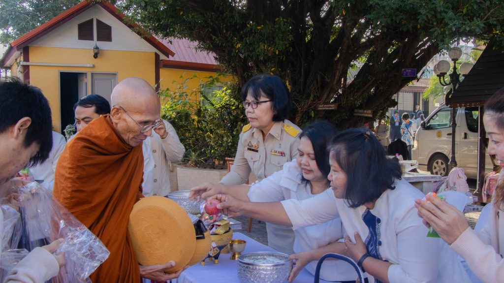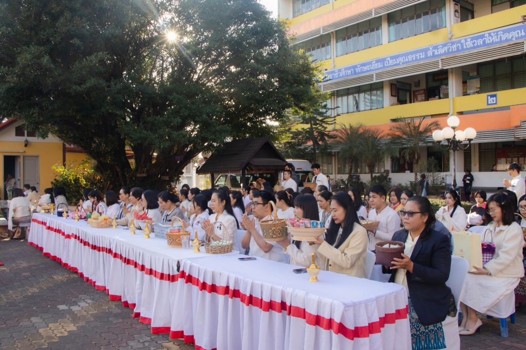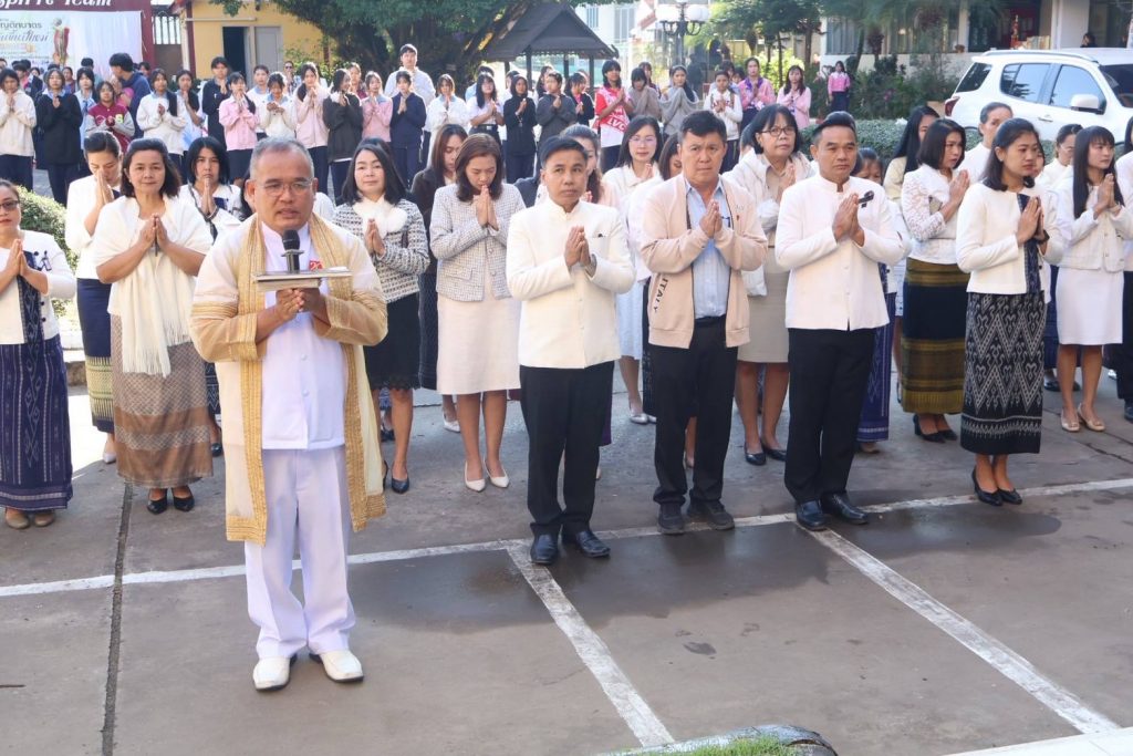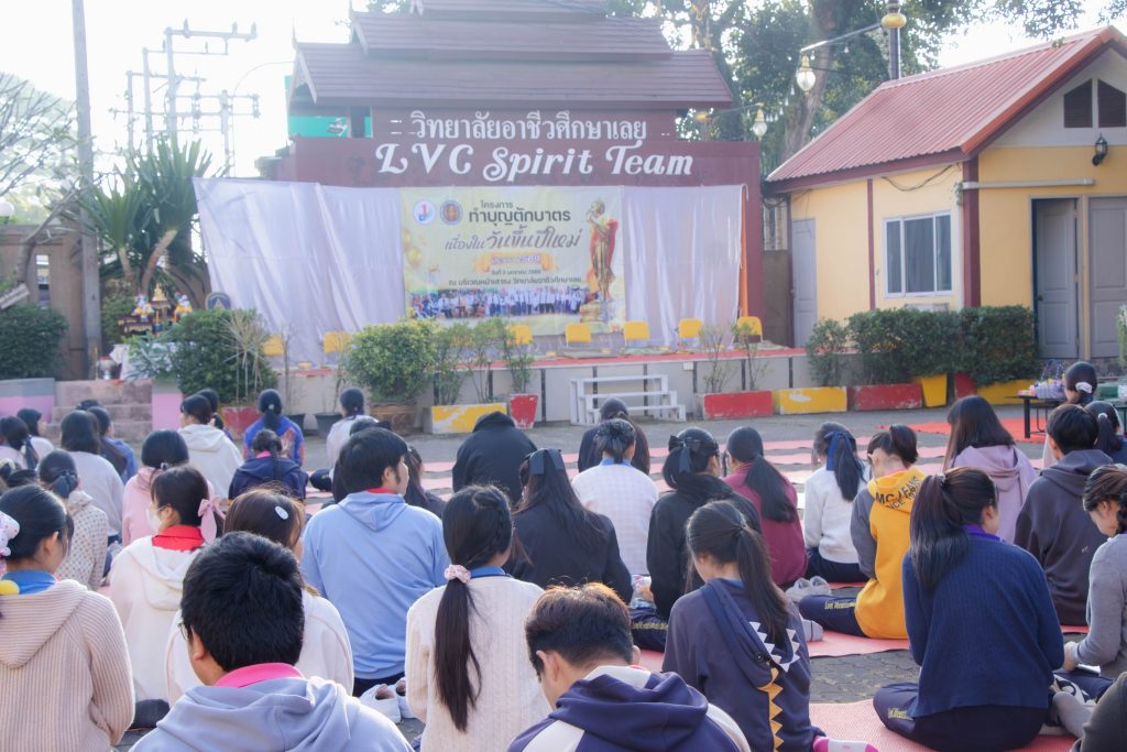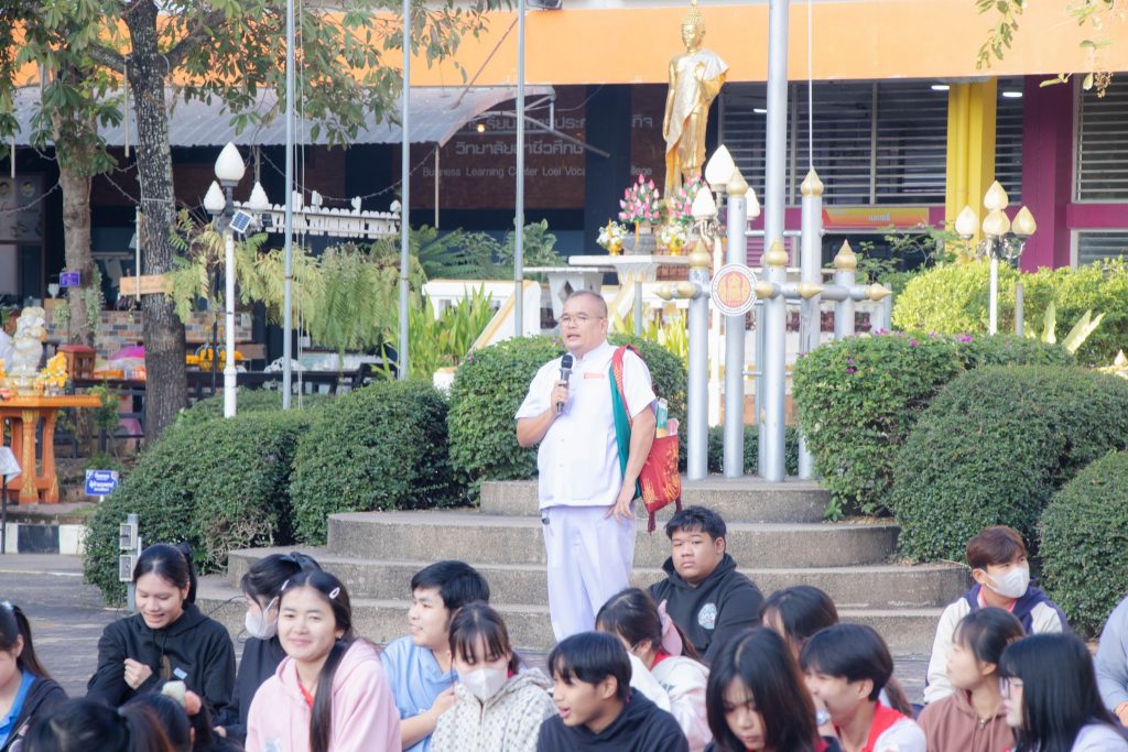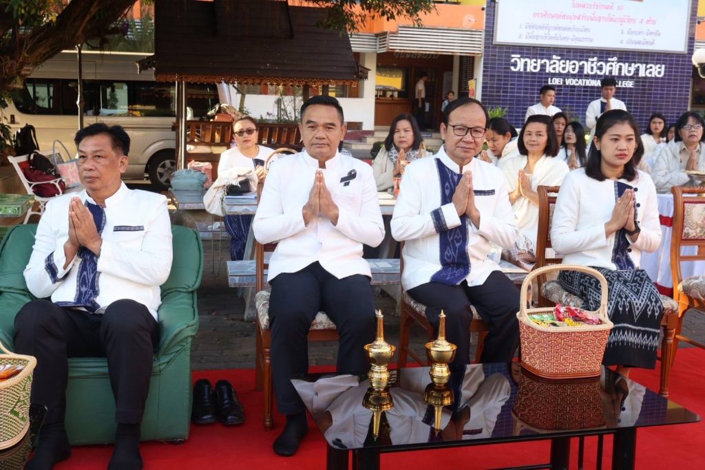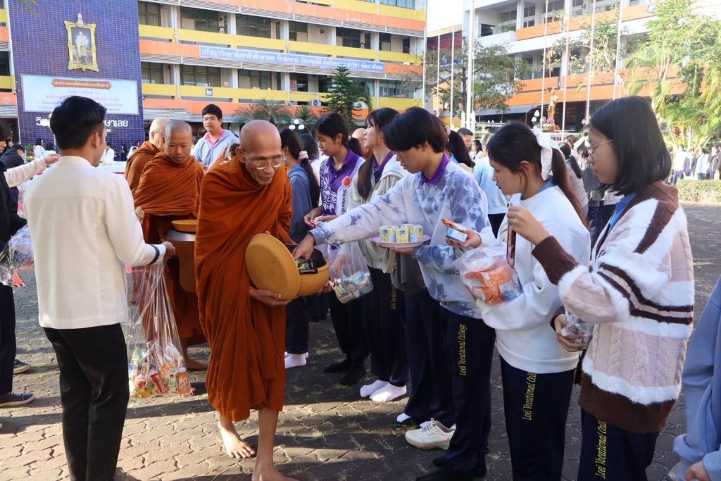 นายจิรายุทธ แก้วอาสา ผู้อำนวยการวิทยาลัยอาชีวศึกษาเลย นำคณะผู้บริหาร คณะครู บุคลากรทางการศึกษา และนักเรียน นักศึกษา จัดโครงการทำบุญตักบาตร เนื่องในวันขึ้นปีใหม่ 2569 และพิธีสักการะพระพุทธรูป บวงสรวงศาลพระภูมิเจ้าที่ สิ่งศักดิ์สิทธิ์ประจำวิทยาลัยอาชีวศึกษาเลย ประจำปี 2569 ในวันที่ 5 มกราคม 2569 ณ บริเวณหน้าเสาธง วิทยาลัยอาชีวศึกษาเลย