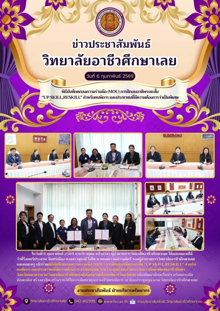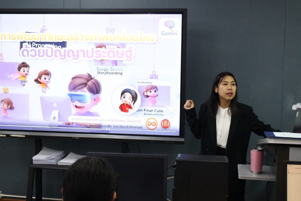 สาขาวิชาเทคโนโลยีธุรกิจดิจิทัล ฝ่ายวิชาการ ดำเนินโครงการเชิญวิทยากรภูมิปัญญาท้องถิ่น เสริมความรู้ให้นักเรียน นักศึกษา ชมรมวิชาชีพเทคโนโลยีธุรกิจดิจิทัล ปีการศึกษา 2568 โดยนายจิรายุทธ แก้วอาสา ผู้อำนวยการวิทยาลัยอาชีวศึกษาเลยได้มอบหมายให้ ว่าที่ร้อยตรีประสาน จันทร์เมือง รองผู้อำนวยการวิทยาลัยอาชีวศึกษาเลย เป็นประธานในพิธี ซึ่งได้รับเกียรติจากนางสาวภัทรสุดา หริ่งรัตนพันธ์ ครูสาขาวิชาดิจิทัลกราฟิก ได้ให้เกียรติมาบรรยายในหัวข้อ “การพัฒนาทักษะการสร้างภาพเคลื่อนไหวด้วยปัญญาประดิษฐ์ ” ณ ห้องปฎิบัติการคอมพิวเตอร์ วิทยาลัยอาชีวศึกษาเลย