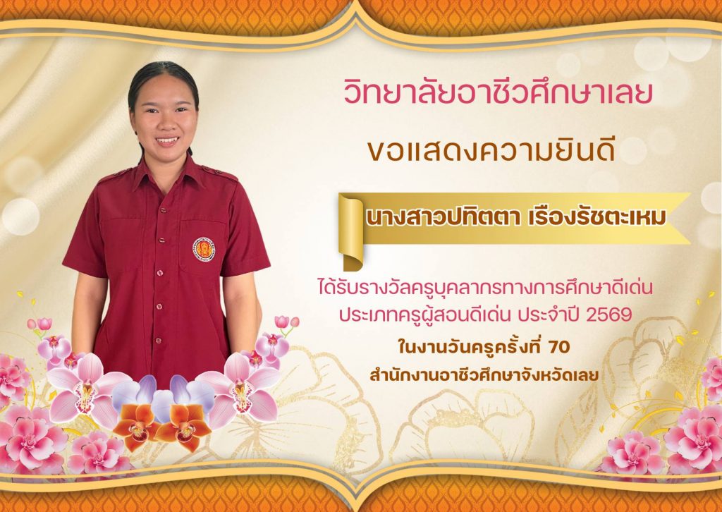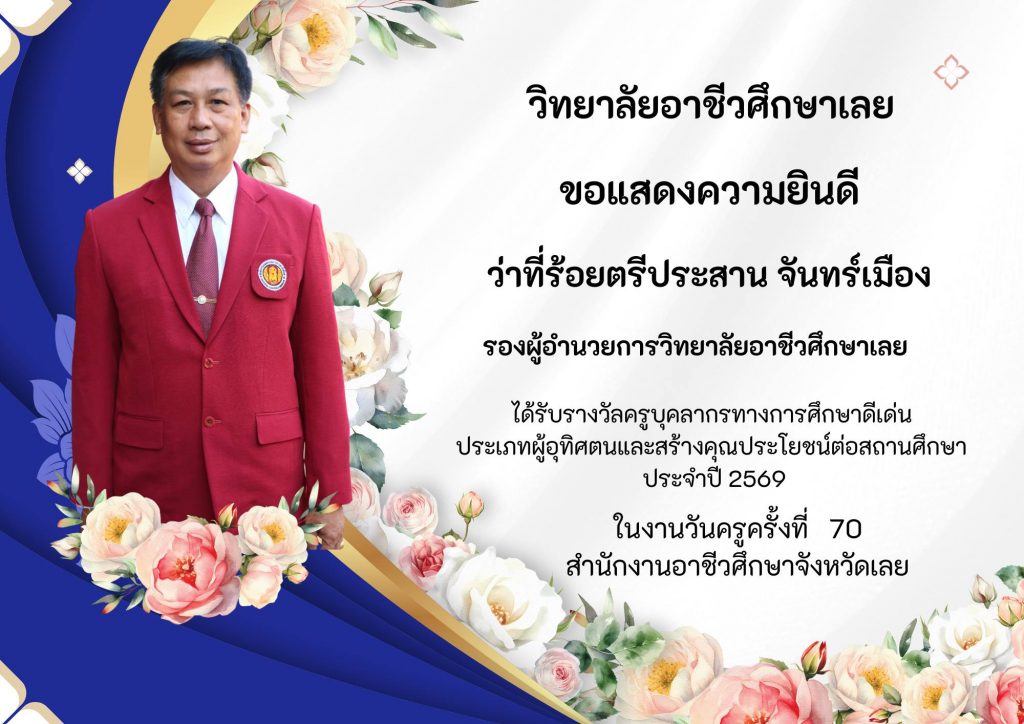 วิทยาลัยอาชีวศึกษาเลยขอแสดงความยินดีกับครูและบุคลากรที่ …