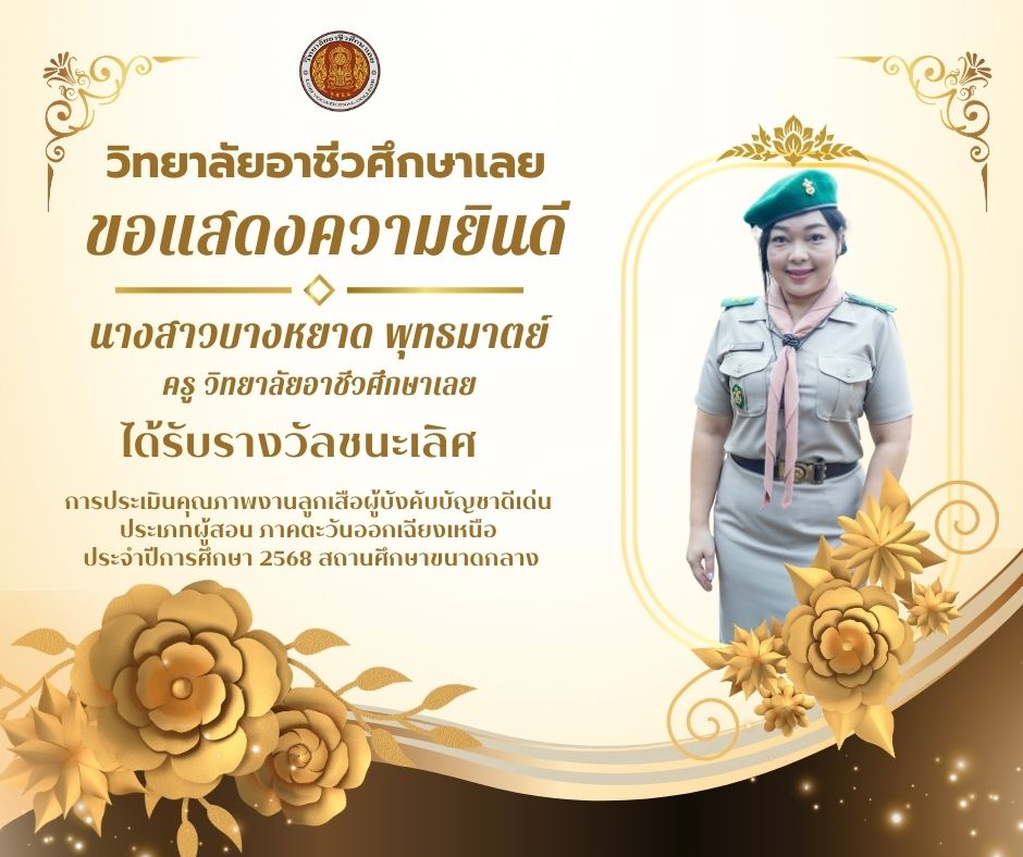ขอแสดงความยินดีนางสาวบางหยาด พุทธมาตย์ ครูวิทยาลัยอาชีวศึกษาเลย