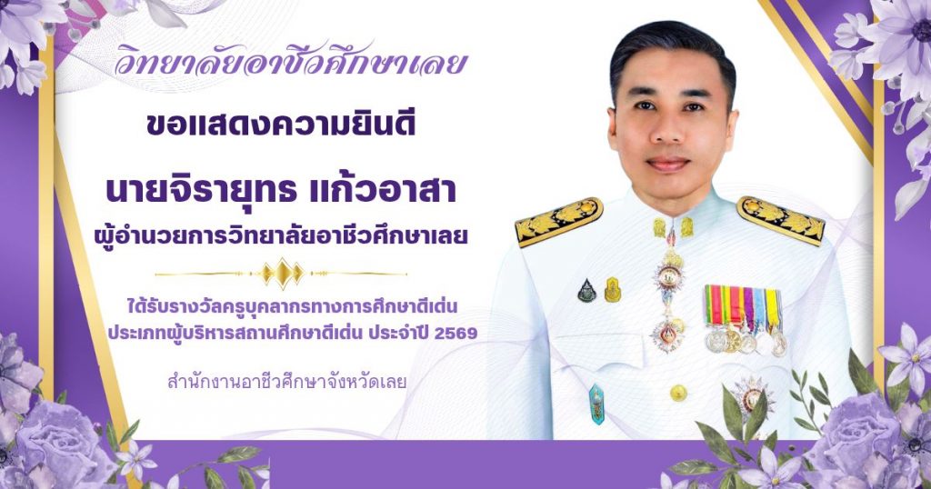 วิทยาลัยอาชีวศึกษาเลยขอแสดงความยินดีกับนายจิรายุทธ แก้ว …