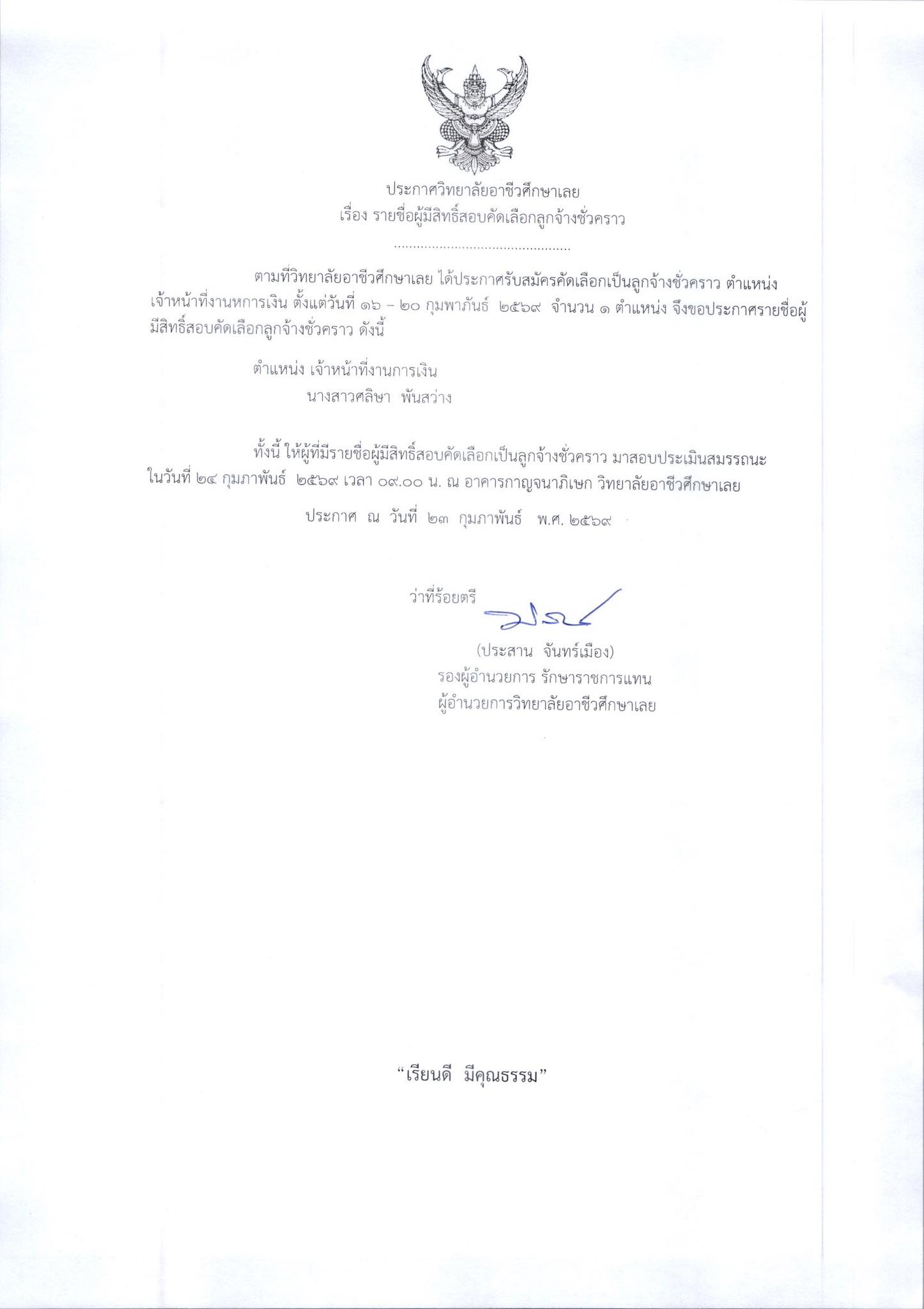 ขอแสดงความยินดีนายจิรายุทธ แก้วอาสา ผู้อำนวยการวิทยาลัยอาชีวศึกษาเลย
